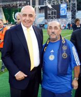 СОММ Президент Федерации Футбола Украины Григорий Суркис, слева, вице-президент ФК "Динамо" (Киев) Йожеф Сабо, в центре, и президент Украины Виктор Ющенко перед началом матча ФК "Динамо" (Киев) - ФК "Милан" (Италия) по случаю 80-летия ФК "Динамо" в Киеве, в четверг, 6 сентября 2007 г. Матч закончился со счетом 2 : 2. Фото Николая Лазаренко / POOL / УНИАН