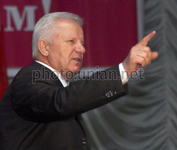 Председатель ВР Украины 5-го созыва Александр Мороз выступает на встрече с жителями города в Херсонском областном академическом музыкально-драматичном театре им. М. Кулиша во время рабочей поездки в г. Херсон в четверг, 27 сентября в 2007 г. За полчаса до встречи в театре был выключен свет, и часть мероприятия прошла при свечах. Фото Анастасии Сироткиной / POOL / УНИАН