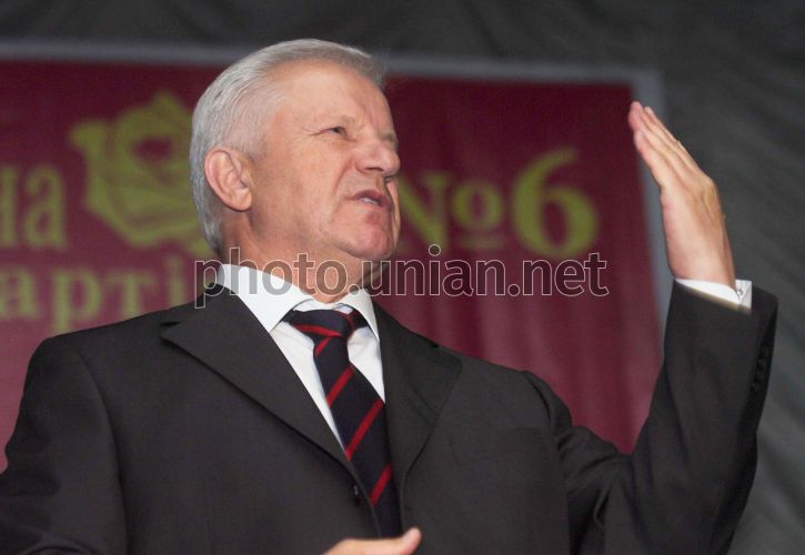Председатель ВР Украины 5-го созыва Александр Мороз выступает на встрече с жителями города в Херсонском областном академическом музыкально-драматичном театре им. М. Кулиша во время рабочей поездки в г. Херсон в четверг, 27 сентября в 2007 г. За полчаса до встречи в театре был выключен свет, и часть мероприятия прошла при свечах. Фото Анастасии Сироткиной / POOL / УНИАН