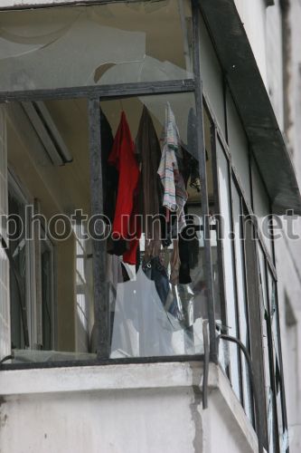 Выбитые стекла на балконе дома, разрушенного вследствие взрыва бытового газа в Днепропетровске, в субботу, 13 октября 2007 г. Разрушена половина жилой десятиэтажки, расположенной на массиве Победа, ул. Мандрыкивская, 127. По показаниям очевидцев, взрыв произошел сегодня в одной из квартир подъезда в средине дома, в 10.45 утра. Над двумя подъездами сорвало крышу. Пожара на месте взрыва не было. Спасатели эвакуируют людей из прилегающих к участку взрыва квартир. Никто из официальных лиц пока не комментирует это чрезвычайное событие. Около разрушенного дома работают спасательные службы МЧС, милиция. По предварительным данным, восемь человек погибли, 18 – травмированы. Об этом журналистам сообщил представитель Управления здравоохранения Днепропетровского городского совета, добавив, что среди пострадавших – трое детей. Спасатели МЧС продолжают разбирать завалы в пострадавшем в результате взрыва доме. В прилегающих домах взрывной волной выбиты оконные стекла. Во всех домах жилого массива отключены газ и вода. Как сообщили в пресс-службе МЧС, в Киеве проходит заседание руководства Министерства чрезвычайных ситуаций, оперативная группа готовится вылететь в Днепропетровск. По предварительной версти, причина взрыва – неосторожное использование бытового газа. Фото Евгения Арсеньева / УНИАН