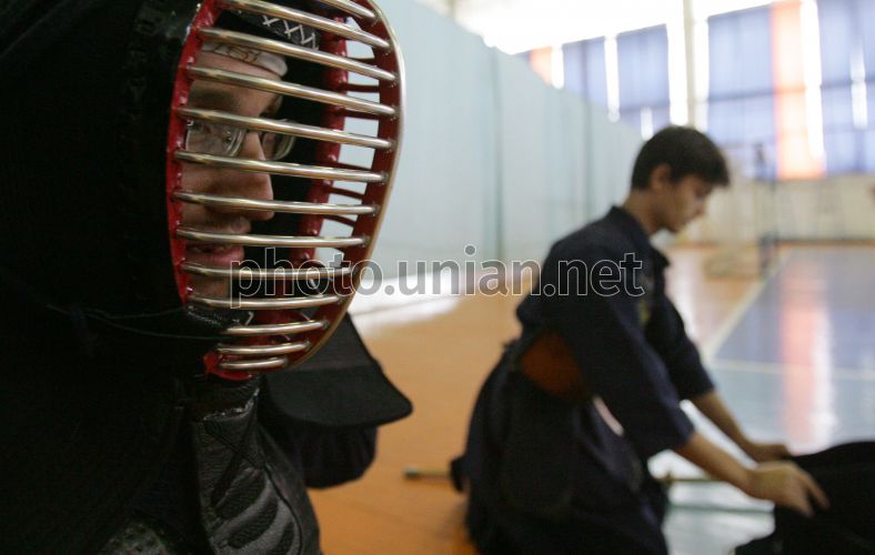 Участники единственного в Украине турнира по кендо, организованного Киевской федерацией кендо на Кубок Посла Японии в Украине, готовятся к поединку в Киеве в субботу, 13 октября 2007 г. В программе турнира - соревнование в индивидуальном и командном зачете. Фото Сергея Светлицкого / УНИАН