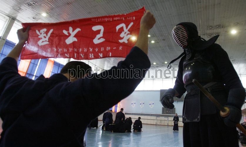 Участники единственного в Украине турнира по кендо, организованного Киевской федерацией кендо на Кубок Посла Японии в Украине, во время поединка в Киеве в субботу, 13 октября 2007 г. В программе турнира - соревнование в индивидуальном и командном зачете. Фото Сергея Светлицкого / УНИАН