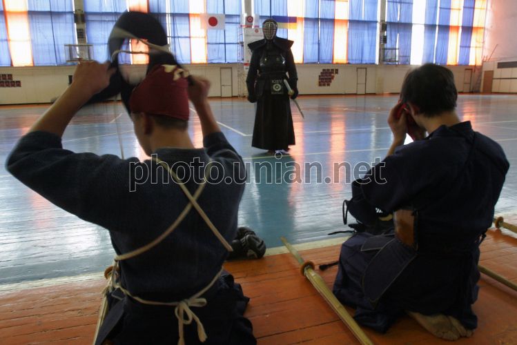 Участники единственного в Украине турнира по кендо, организованного Киевской федерацией кендо на Кубок Посла Японии в Украине, готовятся к поединку в Киеве в субботу, 13 октября 2007 г. В программе турнира - соревнование в индивидуальном и командном зачете. Фото Сергея Светлицкого / УНИАН