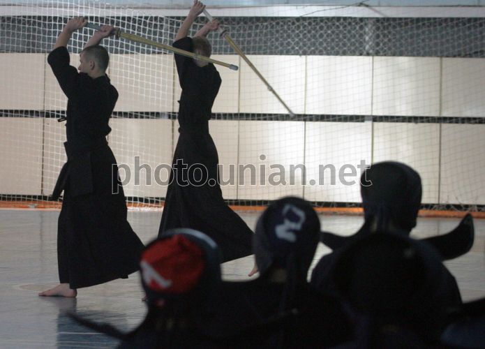 Участники единственного в Украине турнира по кендо, организованного Киевской федерацией кендо на Кубок Посла Японии в Украине, готовятся к поединку в Киеве в субботу, 13 октября 2007 г. В программе турнира - соревнование в индивидуальном и командном зачете. Фото Сергея Светлицкого / УНИАН