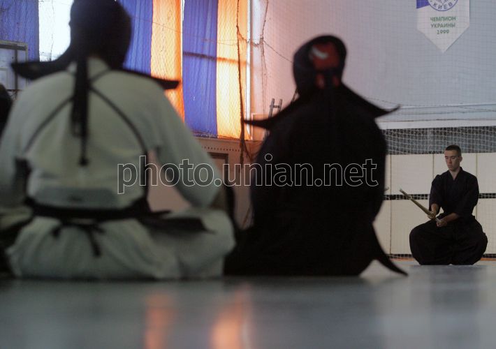 Участники единственного в Украине турнира по кендо, организованного Киевской федерацией кендо на Кубок Посла Японии в Украине, готовятся к поединку в Киеве в субботу, 13 октября 2007 г. В программе турнира - соревнование в индивидуальном и командном зачете. Фото Сергея Светлицкого / УНИАН