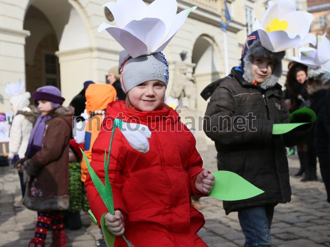 Участники акции "Сохраним первоцветы!" во Львове, 26 февраля 2019 г. В этот день во Львове активисты провели акцию "Сохраним первоцветы!", цель которой - напомнить о необходимости сохранения окружающей среды, воспитания ответственности за рациональное использование растительных ресурсов. Фото Кравс Евгений / УНИАН