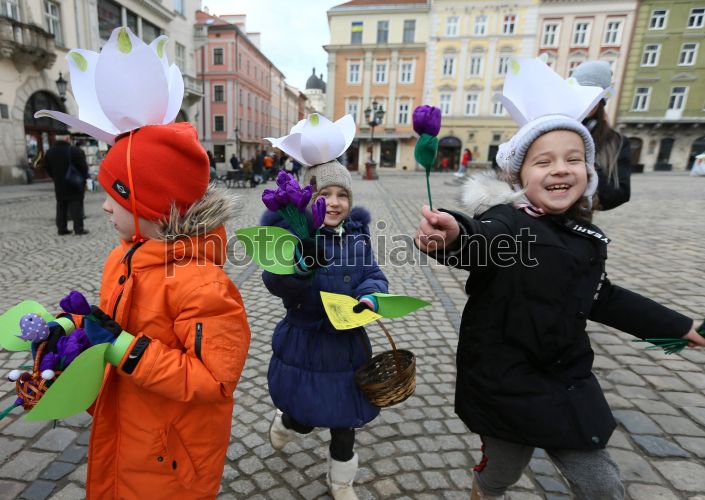 Участники акции "Сохраним первоцветы!" во Львове, 26 февраля 2019 г. В этот день во Львове активисты провели акцию "Сохраним первоцветы!", цель которой - напомнить о необходимости сохранения окружающей среды, воспитания ответственности за рациональное использование растительных ресурсов. Фото Кравс Евгений / УНИАН