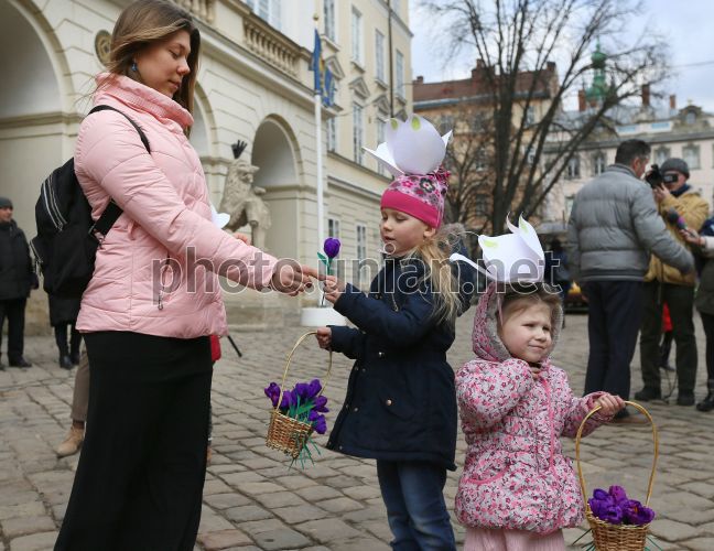 Участники акции "Сохраним первоцветы!" во Львове, 26 февраля 2019 г. В этот день во Львове активисты провели акцию "Сохраним первоцветы!", цель которой - напомнить о необходимости сохранения окружающей среды, воспитания ответственности за рациональное использование растительных ресурсов. Фото Кравс Евгений / УНИАН