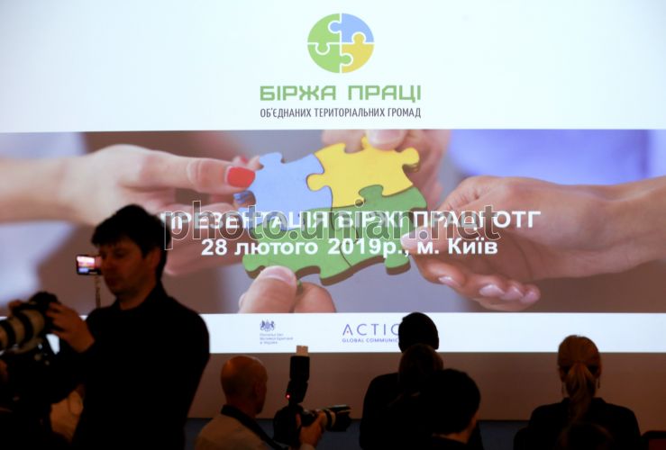 Презентация интернет-платформы "Біржа праці ОТГ", которая является частью проекта "Социальная работа для объединенных территориальных общин в Украине", в Киеве, 28 февраля 2019 г. Фото Ратынский Вячеслав / УНИАН