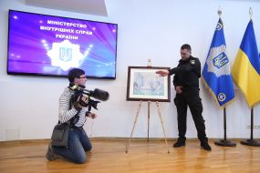 Чрезвычайный и Полномочный посол Франции в Украине Изабель Дюмон во время брифинга МВД, на котором представили картину "Порт Ла-Рошель" французского художника Поля Синьяка, похищеную из музея Нанси, в Киеве, 23 апреля 2019 г. В этот день в Киеве на брифинге в МВД представили картину французского художника Поля Синьяка "Порт Ла-Рошель", которая была похищена из музея Нанси. Ее полицейские изъяли у подозреваемых в убийстве ювелира Сергея Киселева. Фото Гонтар Владимир / УНИАН