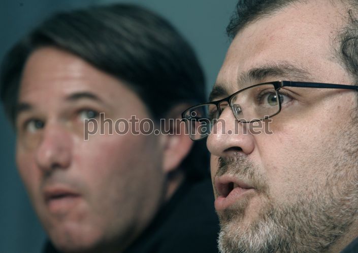 Партнер, управляющий директор американской юридической компании в Украине „Marks, Sokolov & Burd, LLC” Брюс Маркс, слева, и управляющий директор Киевского офиса компании Джин Берд во время пресс-конференции в УНИАН, посвященной открытию компании „Marks, Sokolov & Burd, LLC” в Украине, в Киеве в четверг, 25 октября 2007 г. Юридическая компания „Marks, Sokolov & Burd, LLC” представляет большие компании, которые производят FMCG, и другие компании в судебных разбирательствах относительно защиты прав потребителей. Кроме того, компания представляет интересы Украины в США, а также интересы западных компаний в больших международных процессах, связанных с ведением бизнеса в Украине. Фото Сергея Светлицкого / УНИАН