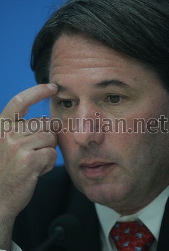 Партнер, управляющий директор американской юридической компании в Украине „Marks, Sokolov & Burd, LLC” Брюс Маркс во время пресс-конференции в УНИАН, посвященной открытию компании „Marks, Sokolov & Burd, LLC” в Украине, в Киеве в четверг, 25 октября 2007 г. Юридическая компания „Marks, Sokolov & Burd, LLC” представляет большие компании, которые производят FMCG, и другие компании в судебных разбирательствах относительно защиты прав потребителей. Кроме того, компания представляет интересы Украины в США, а также интересы западных компаний в больших международных процессах, связанных с ведением бизнеса в Украине. Фото Сергея Светлицкого / УНИАН