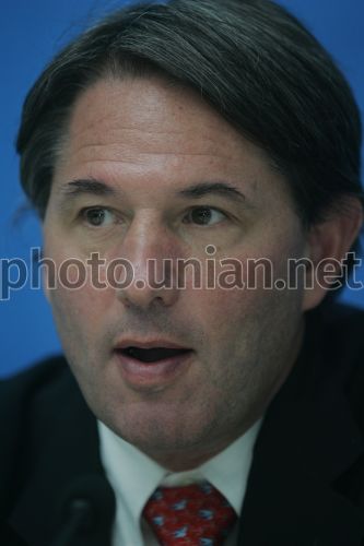 Партнер, управляющий директор американской юридической компании в Украине „Marks, Sokolov & Burd, LLC” Брюс Маркс во время пресс-конференции в УНИАН, посвященной открытию компании „Marks, Sokolov & Burd, LLC” в Украине, в Киеве в четверг, 25 октября 2007 г. Юридическая компания „Marks, Sokolov & Burd, LLC” представляет большие компании, которые производят FMCG, и другие компании в судебных разбирательствах относительно защиты прав потребителей. Кроме того, компания представляет интересы Украины в США, а также интересы западных компаний в больших международных процессах, связанных с ведением бизнеса в Украине. Фото Сергея Светлицкого / УНИАН