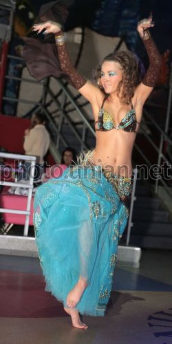 Хмельничанка Юлия Дембицкая, репрезентантка клуба ”Фламинго”, выступает на Международном турнире по классическому танцу живота «Восточная звезда-2007» во Львове в воскресенье, 28 октября 2007 г. Первое место в категории Малые группы классического «belly-dance» (танец живота) танцовщицы хмельницкого клуба ”Интисар”. Второе место в категории Малые группы заняли танцовщицы из клуба «Лидер» (Львов), третье – репрезентанты клуба «Караван». В категории дуэтов победителями стали белорусы Мария Левковская та Екатерина Ягниш (клуб «Азалис»). «Серебряными» призерами – киевляне Марсель Хашеми и Хале Адхами (клуб «Альшанс»).Фото УНИАН