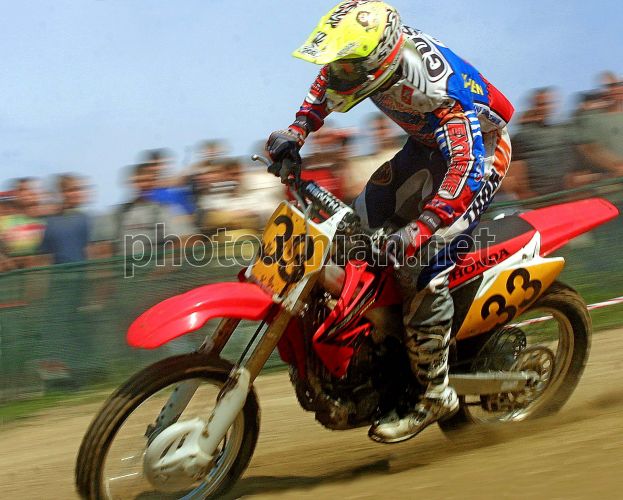 COMM Участник 4-го этапа Чемпионата Европы по мотокроссу Виталий Гусев (Россия) на трассе финального заезда в Киеве в воскресенье, 6 июня 2004г. 4-й этап прошел 5-6 июня. Следующий 5-й этап пройдет 11-12 июля в Яхроме, Россия.