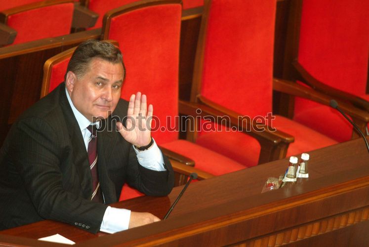 COMM Министр обороны Евгений Марчук на скамье правительства после выступления в зале заседаний Верховной Рады Украины в Киеве во вторник, 22 июня 2004г. В этот день ВР приняла закон о сокращении численности Вооруженных Сил Украины и признала недостаточной работу Кабинета Министров по выполнению конституционных полномочий в сфере обороны. Марчук отметил, что ВС Украины остаются чрезвычайно обременительными для экономики государства. По своей численности Украинская армия занимает 13-е место в мире, а по уровню обеспечения в расчете на одного военнослужащего только 126-е. Марчук сообщил, что ожидается значительная утилизация чрезмерного вооружения и военной техники. Он высказался за сокращение количества генералов в Украине от 300-т до 120-ти человек, а также за сокращение срока срочной воинской службы с 18 до 12 месяцев в рамках профессионализации армии. Фото Виктора Побединского / УНИАН