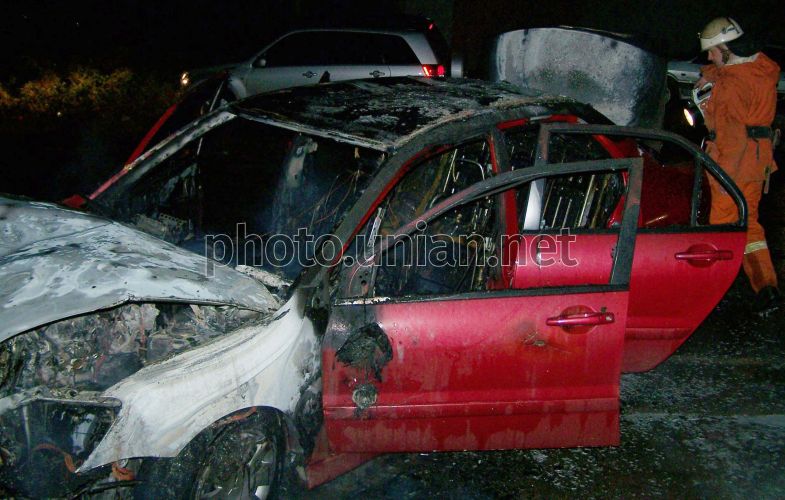 Пожарный осматривает машину после тушения пожара на месте ДТП на автотрассе ”Бердичев-Житомир” в пригороде Бердичева (Житомирская обл.), в пятницу, 7 декабря 2007 г. В Житомире для контроля за ситуацией на автодорогах установят десять видеокамер. Об этом в пятницу, 7 декабря, на расширенном заседании коллегии прокуратуры Житомирской области по вопросам соблюдения законодательства о безопасности дорожного движения и состояния прокурорского надзора сообщила Житомирский городской председатель Вера Шелудченко. Фото Владимира Соболя / УНИАН