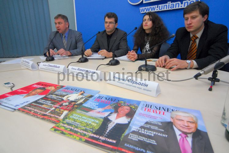 Слева направо: директор по информационному обеспечению деятельности Антирейдерского Союза предпринимателей Украины Сергей Коломиец, исполнительный директор Антирейдерского Союза предпринимателей Украины, член аналитической комиссии Межведомственной комиссии Кабинета Министров Украины по вопросам противодействия противоправному поглощению и завхату предприятий Андрей Семидидько, владелец и шеф-редактор издания "Business Travel" Елена Ковалинская и адвокат, кандидат юридических наук, доцент Александр Серегин на пресс-конференции на тему: “Рейдер атакует СМИ” в Киеве, во вторник, 11 декабря 2007 г. Фото Дмитрия Куприяна / УНИАН