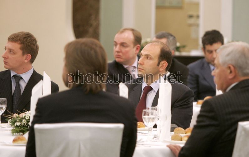 Бизнесмены во время встречи-ланча представителей власти и большого бизнеса ”Согрей любовью ребенка” в Киеве, во вторник, 11 декабря 2007 г. Цель акции – поиск путей сотрудничества в решении проблем многодетных семей. Президент Украины Виктор Ющенко призвал украинский бизнес и власть к участию в благотворительности в поддержку многодетных семей. Виктор Ющенко сообщил, что намеревается создать Национальный совет при Президенте Украины по вопросам благотворительности. В Украине насчитывается приблизительно 13,5 млн. семей, из них 396, 2 тыс. – многодетные. Фото Михаила Маркива / POOL / УНИАН
