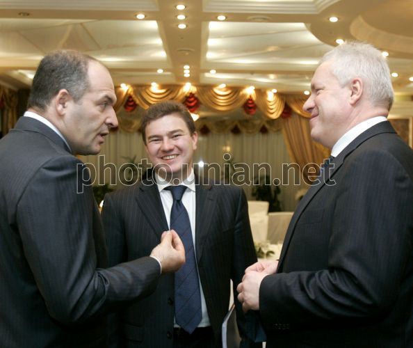 Бизнесмен Сергей Тигипко, слева, во время встречи-ланча представителей власти и большого бизнеса ”Согрей любовью ребенка” в Киеве, во вторник, 11 декабря 2007 г. Цель акции – поиск путей сотрудничества в решении проблем многодетных семей. Президент Украины Виктор Ющенко призвал украинский бизнес и власть к участию в благотворительности в поддержку многодетных семей. Виктор Ющенко сообщил, что намеревается создать Национальный совет при Президенте Украины по вопросам благотворительности. В Украине насчитывается приблизительно 13,5 млн. семей, из них 396, 2 тыс. – многодетные. Фото Михаила Маркива / POOL / УНИАН