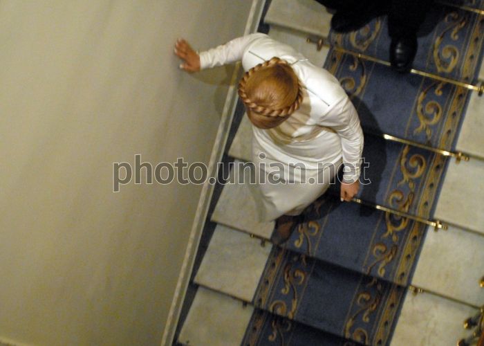 Новый премьер-министр Украины Юлия Тимошенко спкскается по лестнице в Верховной Раде в Киеве, во вторник, 18 декабря 2007 г. Фото Дмитрия Стаховского / УНИАН
