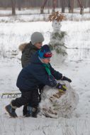 Дети лепят снеговика