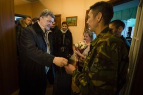 Президент Петр Порошенко посетил семью участника АТО Николая Лозяка в Ивано-Франковской области