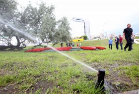 Возле "Левобережной" запустили отремонтированную поливо-оросительную систему