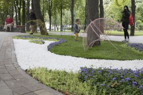 Обновленная центральная входная группа с надписью "Куреневский парк"
